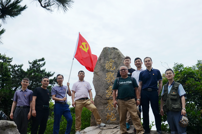2019年7月13日上午8點,海陸重工黨員先鋒隊成員共計十六人,沿著72年前革命先烈的道路,從大別山北麓險道龍脊背攀登,與當日中午12點左右全員登頂,歷時四個小時。